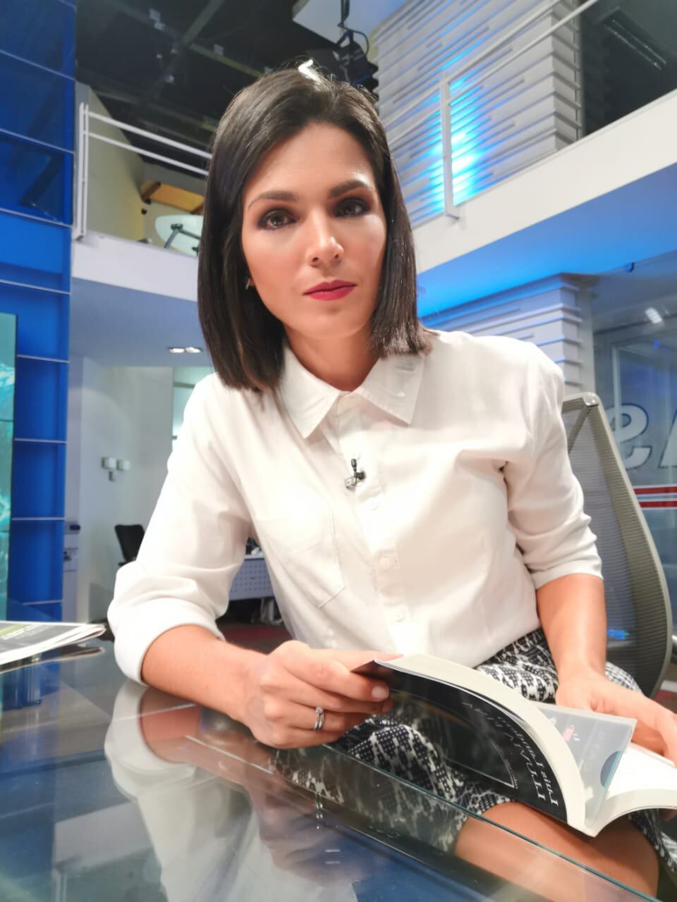 Se trata de la experimentada periodista Natalia Suárez, quien se encarga de presentar la edición de noticias de la mañana junto a su compañero Daniel Céspedes.