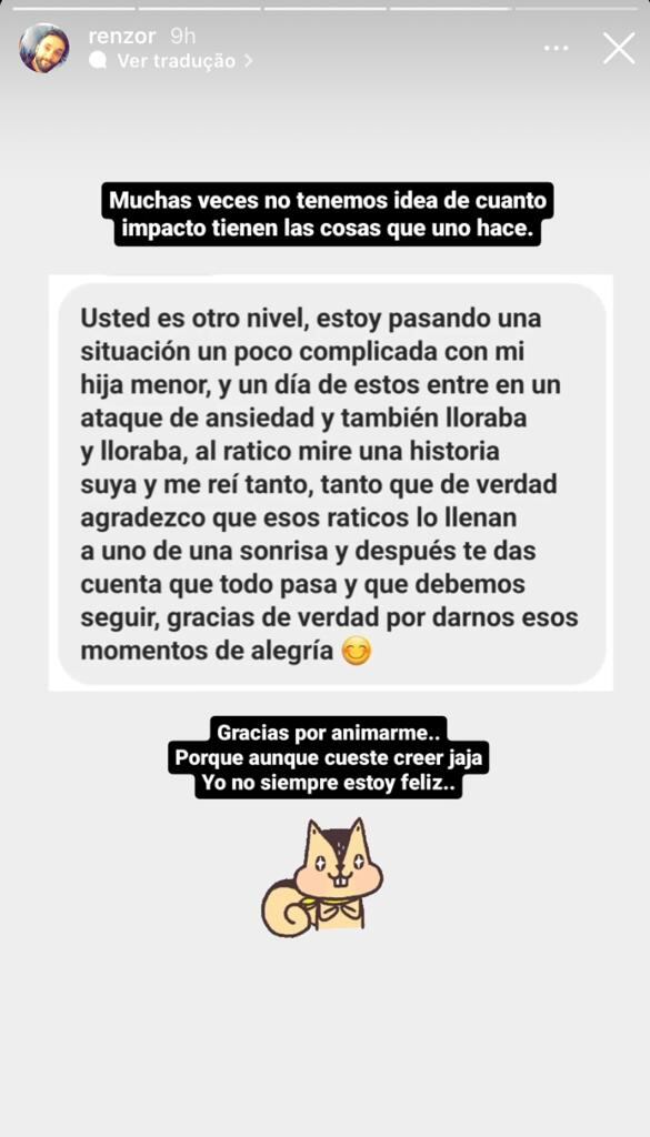 “Muchas veces no tenemos idea de cuánto impacto tienen las cosas que uno hace. Gracias por animarme porque aunque cueste creer yo no siempre estoy feliz”, agregó.