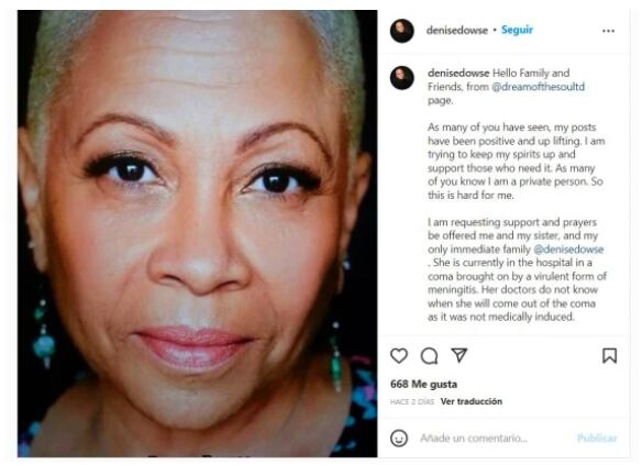 “Estoy pidiendo apoyo y plegarias para mi hermana, mi único familiar cercano (...) los médicos no saben cuándo va a salir de este estado de coma que no fue inducido”, compartió.