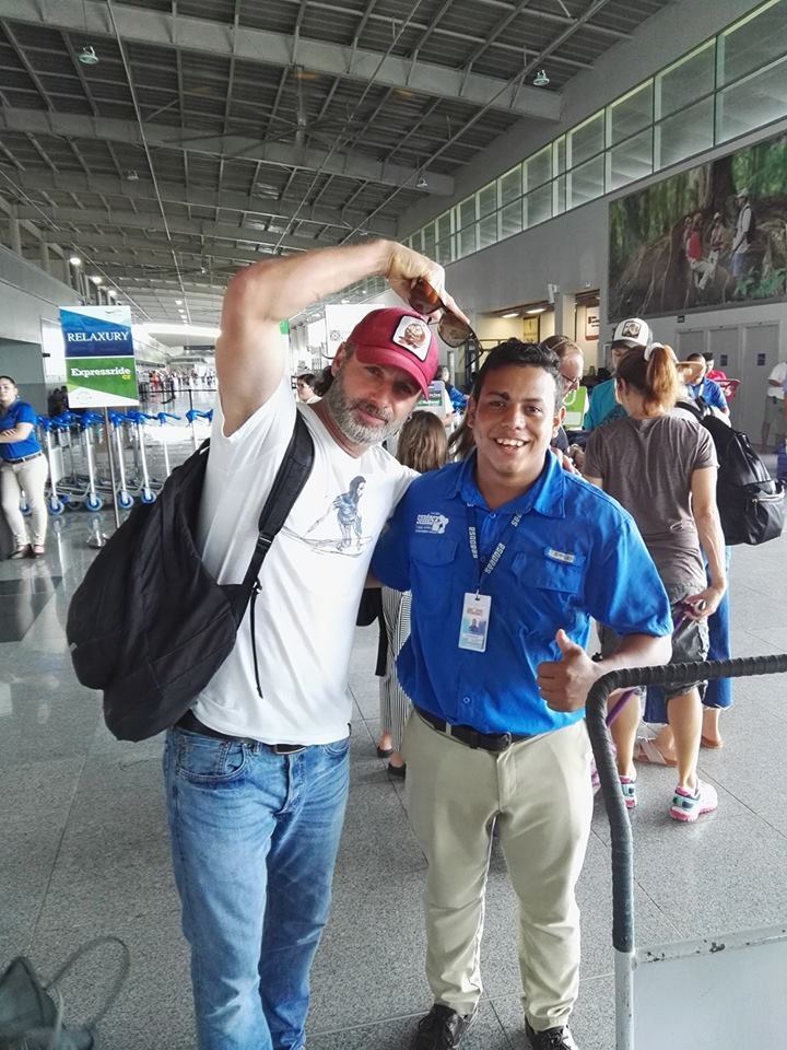 Uno de los suertudos del aeropuerto fue Antonio Mata Leiva, quien no perdió tiempo y se sacó una foto con el actor Andrew Lincoln, comenta que fue algo inesperado, pero que el actor fue muy amable.