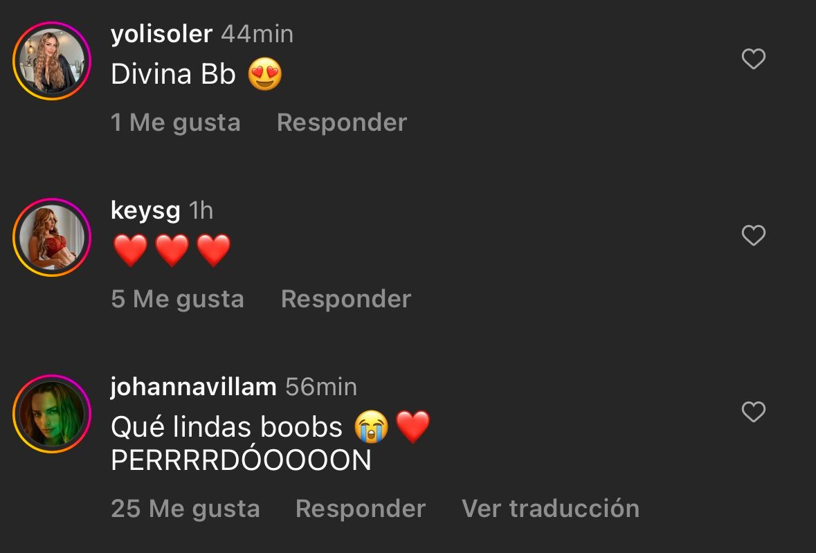 “Wao que bella”, “Espectacular”, fueron parte de los comentarios de sus seguidores; incluso, hasta la comunicadora Johanna Villalobos le escribió:”Qué lindas Boo… perdón”, mientras que Keyla Sánchez le dejó unos corazones rojos.