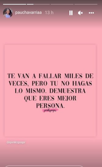 “Te van a fallar miles de veces, pero tú no hagas lo mismo, demuestra que eres mejor persona”, escribió en una de sus historias el pasado viernes.