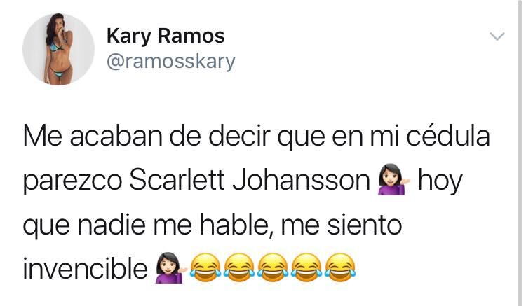La modelo Karina Ramos, quien suele ser bastante activa en redes sociales, puso Twitter de “cabeza” al asegura que le dijeron que se parecía a la actriz Scarlett Johansson.