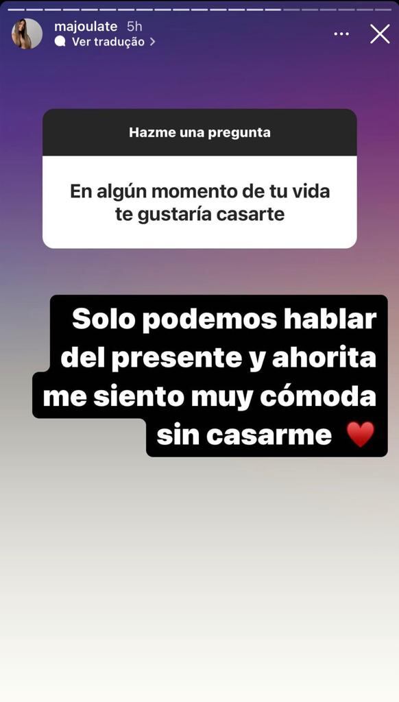 “Solo podemos hablar del presente y ahorita me siento muy cómoda sin casarme”, afirmó Ulate en las historias de Instagram.