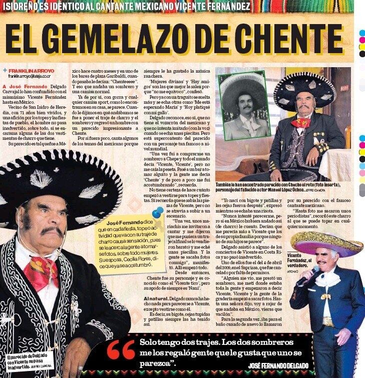El herediano, de 72 años, tiene tiempales de vestirse como charro y cantar las piezas del mexicano en los topes, y aunque su voz no suena igual a la del Rey de las rancheras, su parecido físico es sorprendente.