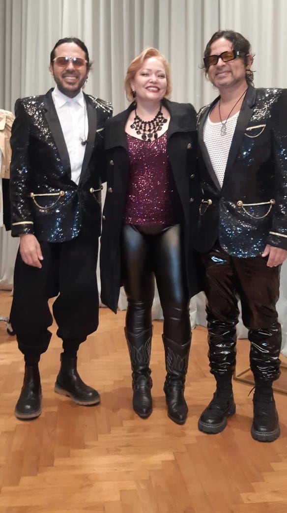 Se trata de la diseñadora Priscilla Delgado, la misma que en otras ocasiones ha vestido a Melissa Mora, la cual les llevó dos chaquetas negras a los cantantes y ellos decidieron usarlas en su presentación como muestra de agradecimiento.