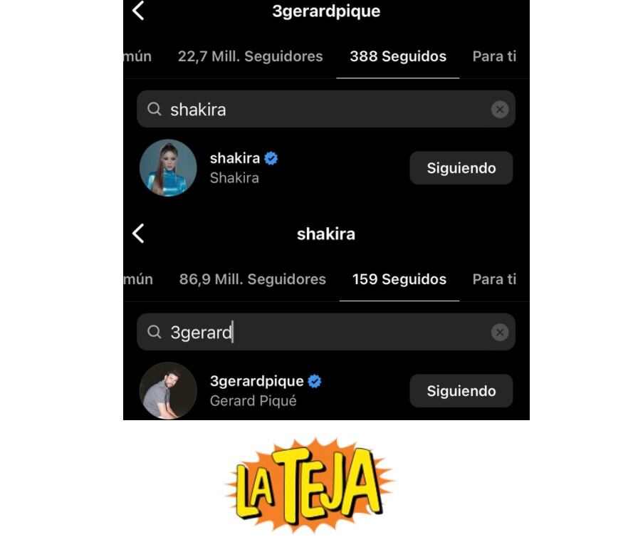 Tanto la intérprete de “Te Felicito”, como el exdefensa del Barcelona, se siguen mutuamente en Instagram. La barranquillera cuenta con casi 87 millones de seguidores y su ex es uno de ellos, mientras que Gerard tiene casi 23 millones de seguidores y la colombiana se suma a la lista.