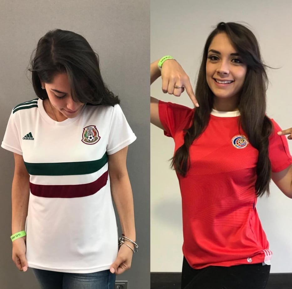 Siempre que sacan playeras (chemas) Adidas me manda para que las luzca, ya de México tengo seis, pero de Costa Rica siete. Ahora que sacaron las dos selecciones camisetas de color negro me parece que están preciosas y me gustaría comprar la de la Sele cuando vaya a allá.