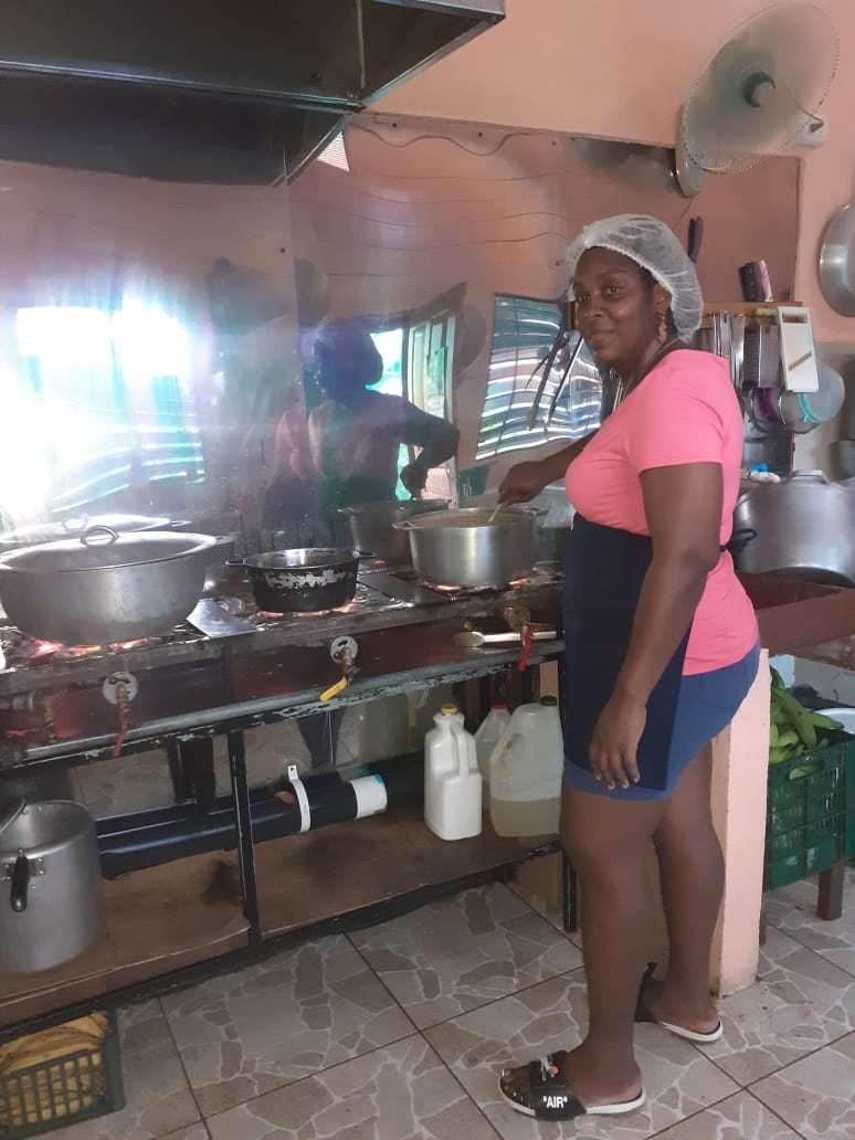 Aquí la hacemos los fines de semana y se vende mucho, usamos jarrete, carne de res y mondongo. A veces viene gente de Limón centro solo a comer la sopa y nos lo dicen.