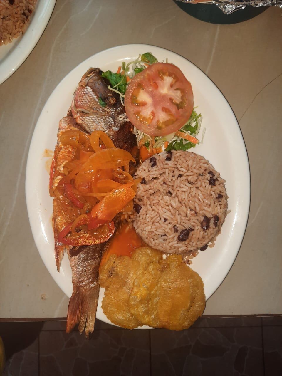 Sí, con pescado, pollo o con camarón. Aquí les gusta mucho porque también es muy cómodo el precio, un (rice and beans) vale apenas 3.700 colones.