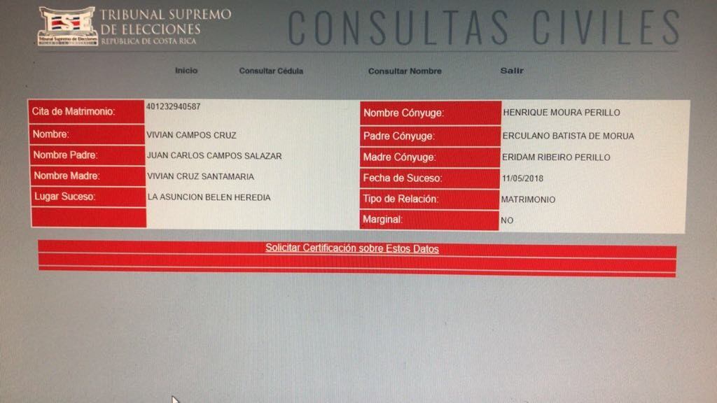 Ahora sí. Queda más que comprobado que la expresentadora Vivian Campos se casó por lo civil con el exjugador del Deportivo Saprissa Henrique Moura.