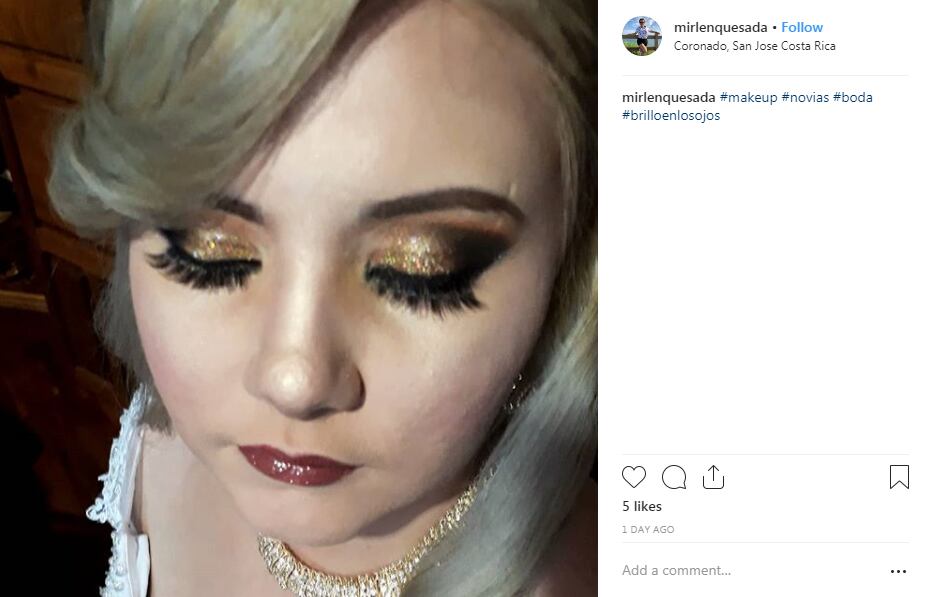 El maquillaje de los tortolitos estuvo a cargo de la experta Mirlen Quesada, amiga íntima de Melissa Mora.