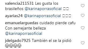 Inmediatamente, un grupo de seguidores comenzó a vacilar a la modelo por la instantánea. Algunos no podían creer que estuviera con semejante leyenda, otros le consultaron si le gustaban los hombres brasileños, y hasta se puede leer como algunos le consultaron sobre quién pidió la foto.