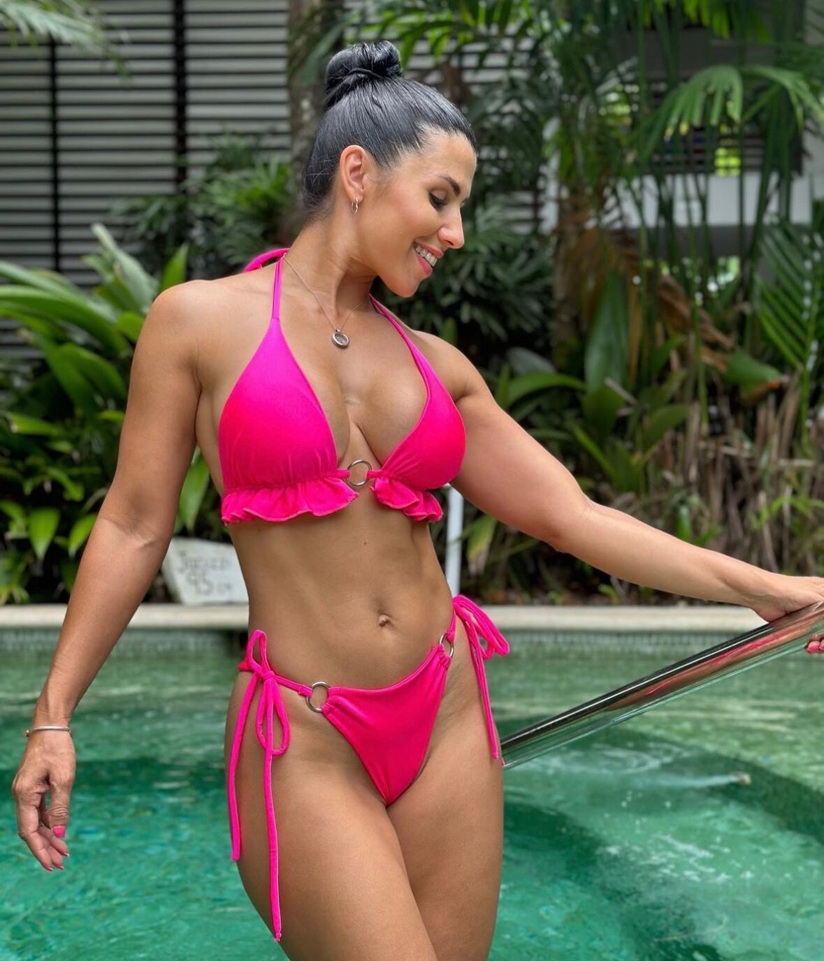 La morena compartió en su cuenta de Instagram unas lindas fotografías, donde sale en traje de baño de dos piezas, enseñando su espectacular figura.
