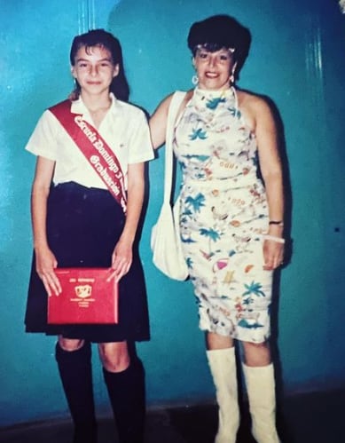 “Ella es mi madre, éramos de muy bajos recuerdos y ella se hacía su propia ropa como también su propio look, con lo que tuviera y llegó así a mi graduación y yo sentía tanta vergüenza que deseaba que me tragara la tierra, porque era muy original y de hecho muy irreverente para esa época, pero mi madre era antes muerta que sencilla, y le valió siempre un pepino los que demás pensaran y eso la hacía única.