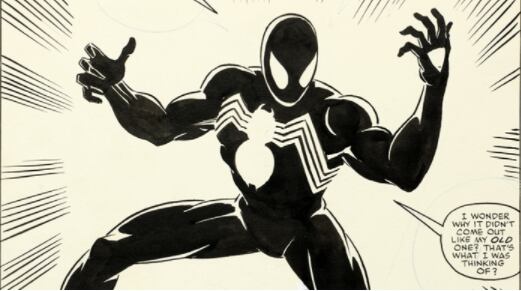 "¡Esta página fue la gran revelación exhibida en la portada! Aquí es donde Peter Parker obtuvo su nuevo y elegante disfraz negro", dijo Heritage Auctions en su descripción de la obra de arte subastada el jueves.
