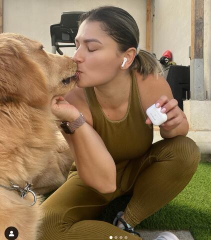 Jazmín Salas, la bella mujer del volante saprissista, publicó en sus redes sociales una imagen en donde aparece dándole un beso en el puro hocico a su perrita Julieta.
