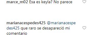 “Abdomen más falso”, “¿Esa es Keyla? No parece”, “ustedes vieron qué carga, en cuatro días, de las últimas fotos, se le hizo este cuerpazo”, es parte de los comentarios que aún quedan en la imagen, ya que algunos usuarios denunciaron que sus opiniones desaparecieron como por arte de magia.