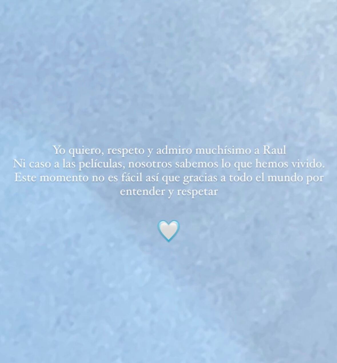 La cantante Rosalía este 27 de julio también hizo eco en redes sociales, dejando un claro mensaje, la guapa escribió: “Yo quiero respeto, y admiro muchísimo a Raul. Ni caso a las películas, nosotros sabemos lo que hemos vivido. Este momento no es fácil, así que gracias a todo el mundo por entender y respetar”.