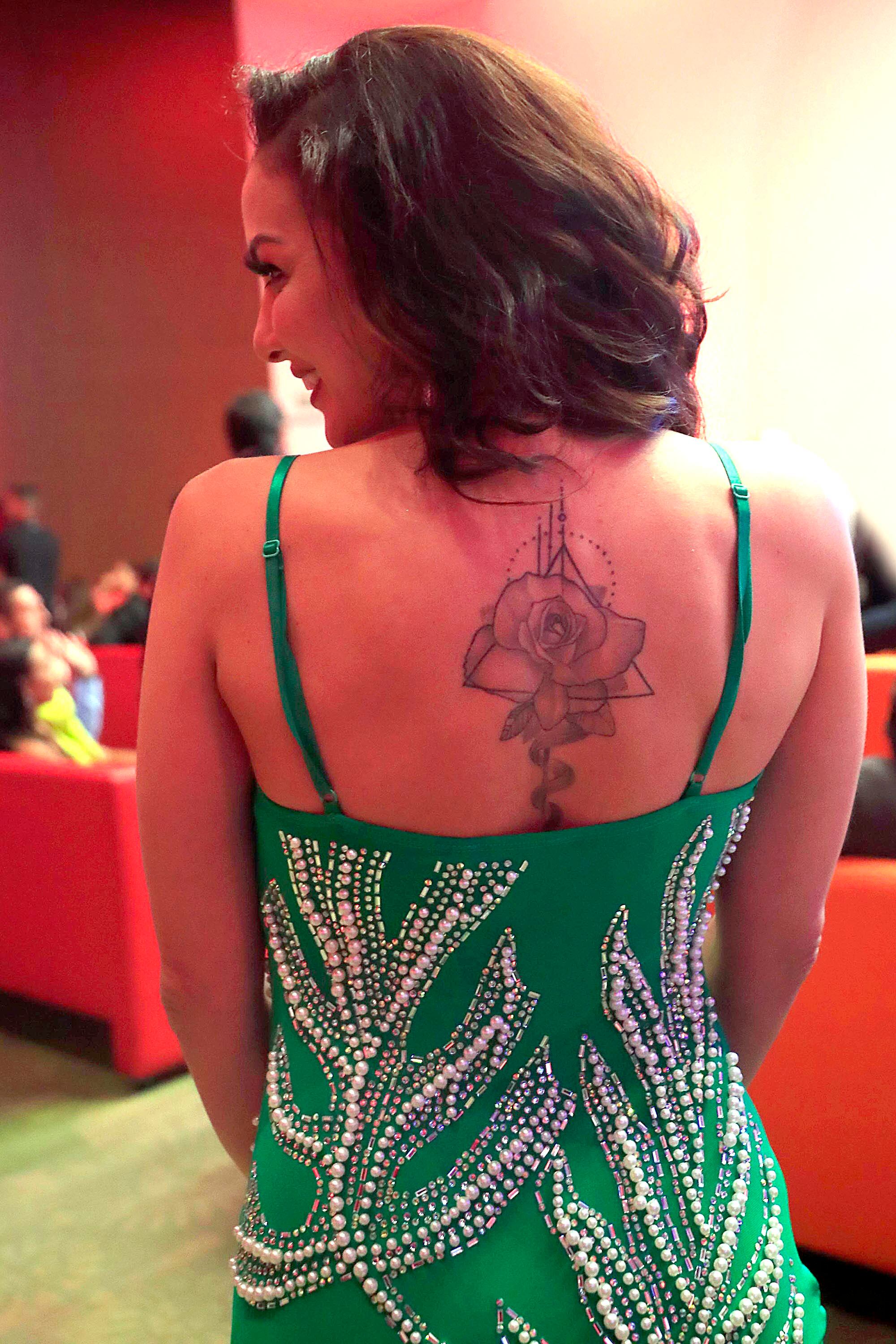 “Es una rosa que representa a María y la parte de abajo, ¿se acuerda que el cabello de Mari era ondulado y muy lindo?, pues me hice un colocho como el de ella. Es un homenaje que le hice a mi amiga para llevarla siempre conmigo”, explicó la guapa.