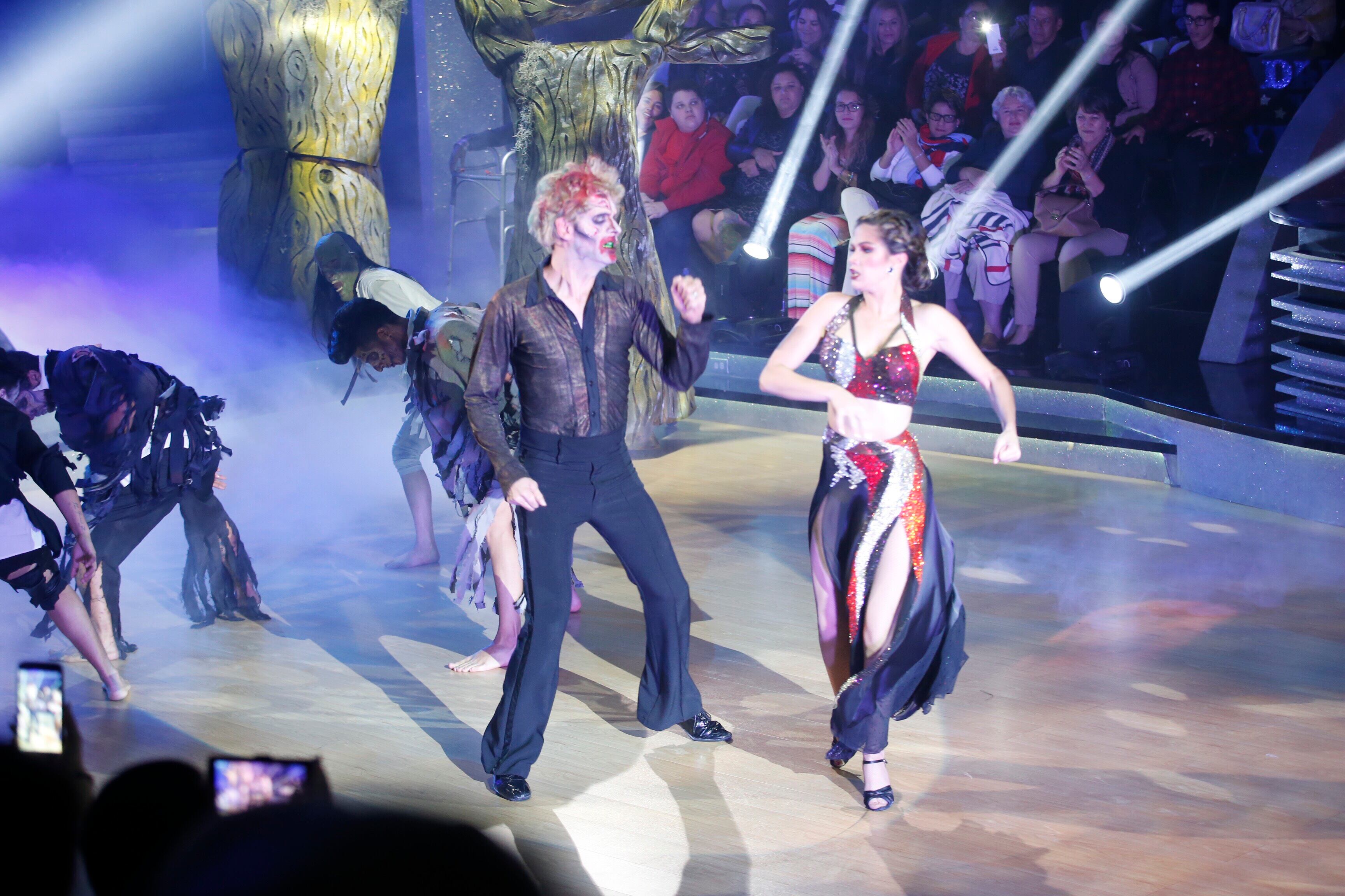 La pareja bailó al ritmo de la pieza Thriller de Michael Jackson y Carvajal apareció pintado como si fuera un zombi, maquillaje que se hizo él solito.