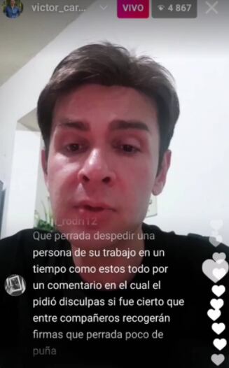 Víctor dijo estar muy tranquilo y mencionó que no había hablado antes del tema porque lo operaron de una muela el viernes anterior y se estaba recuperando. Precisamente ese día le avisaron que estaba fuera del canal.