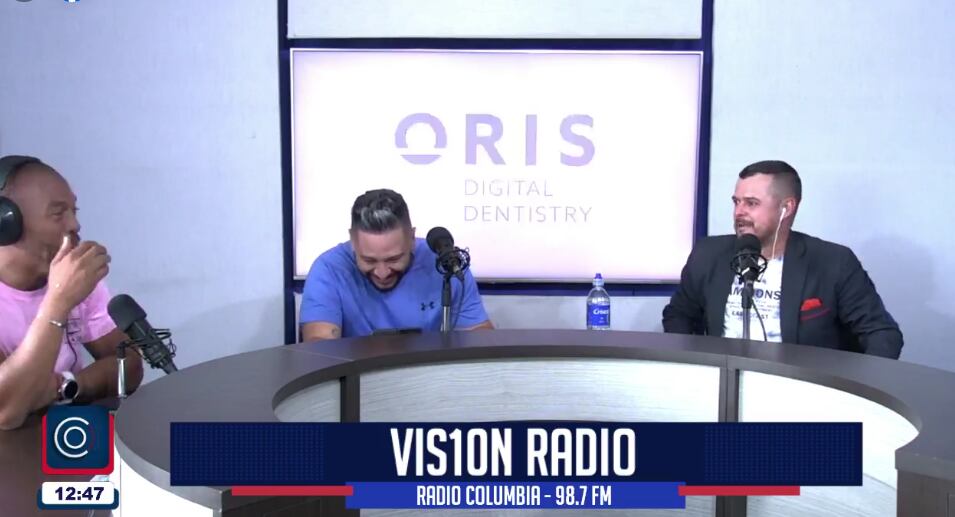 Sus compañeros de Vis10n Radio pensaron que Solís se había desmayado, pero el exjugador luego aclaró que como andaba con dos teléfonos en la mano, movió la silla con las piernas y los rodines la desplazaron más allá de la cuenta dejándolo caer.