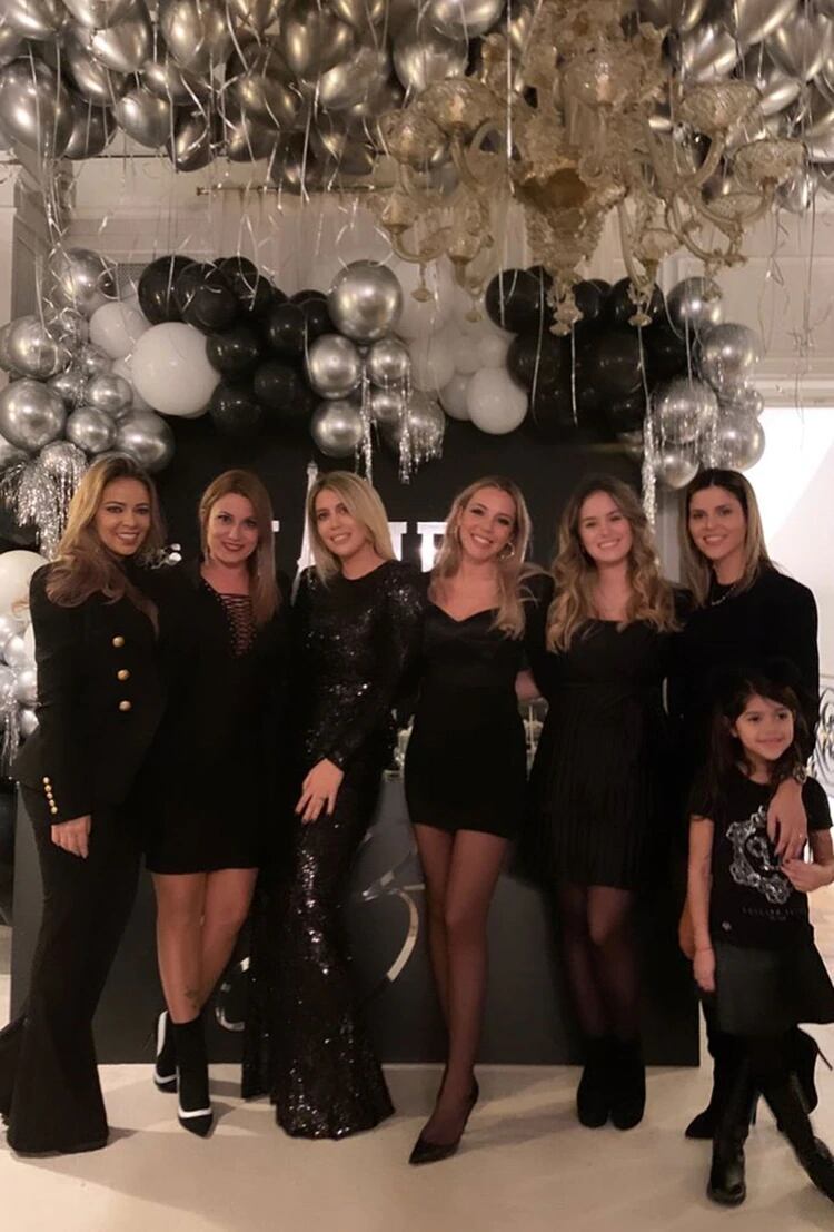El fiestón se realizó en la mansión de Icardi, en Francia, y el lugar estaba decorado con un montón de globos plateados y negros.
