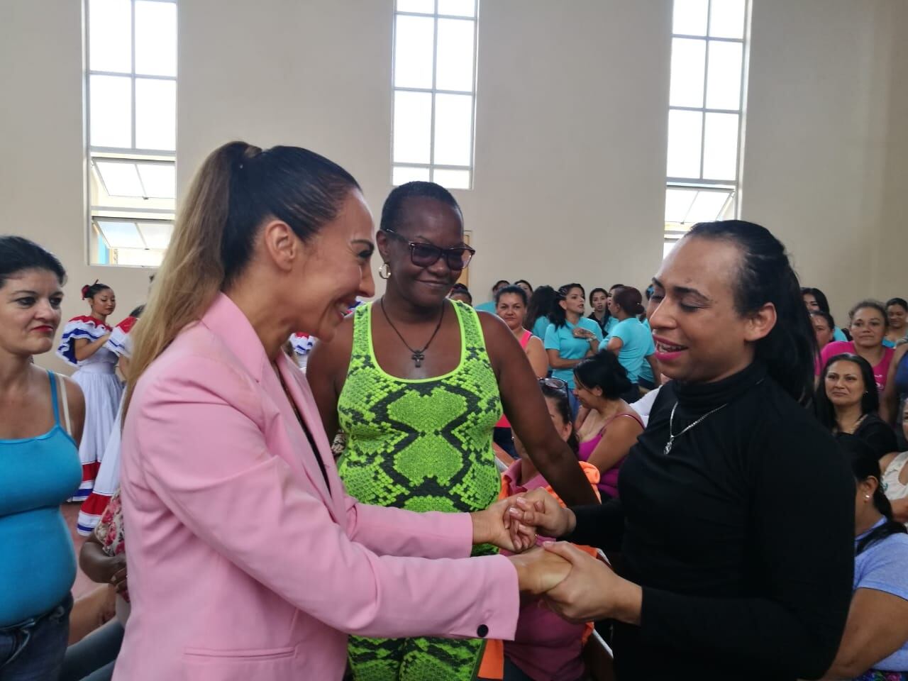 La artista llegó a eso de las 11:15 a.m. al centro penal, donde fue muy bien recibida por un grupo de reclusas que se encontraban en la capilla del penal esperándola.