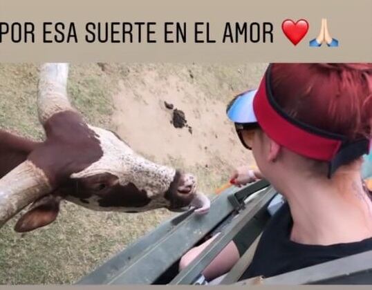 La pelirroja confió en una leyenda africanas que dice que aquella persona que le toque un cacho a un watusi (animal parecido a una vaca pero con unos cachos enormes) tendrá buena suerte en el amor.