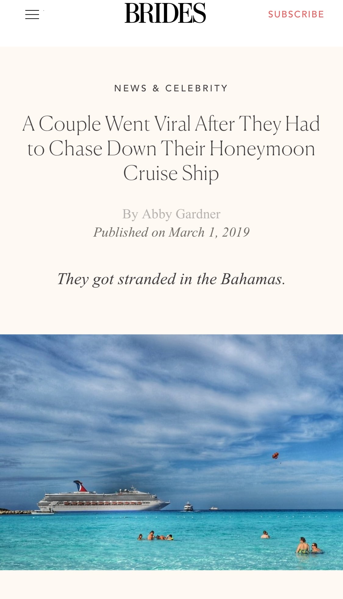 Los recién casados disfrutaron de un crucero del amor como parte de su luna de miel, pero se quedaron botados en la isla de Nassau, capital de las Bahamas. ¿La razón?