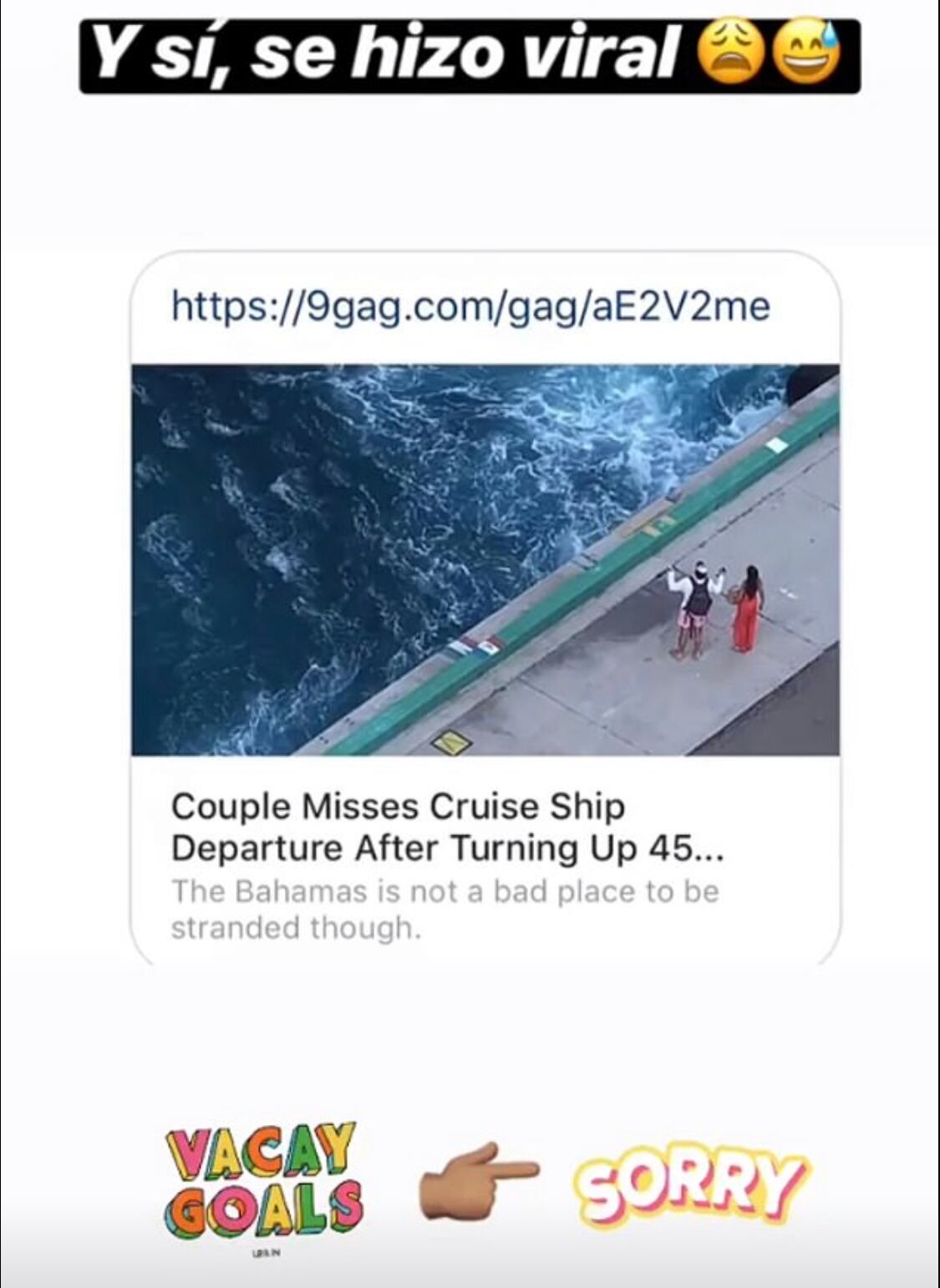 La ahora internacional anécdota quedó grabada por alguien que estaba cerca del punto de salida. Los recién casados se quedaron viendo cómo se alejaba su crucero del amor sin ellos.