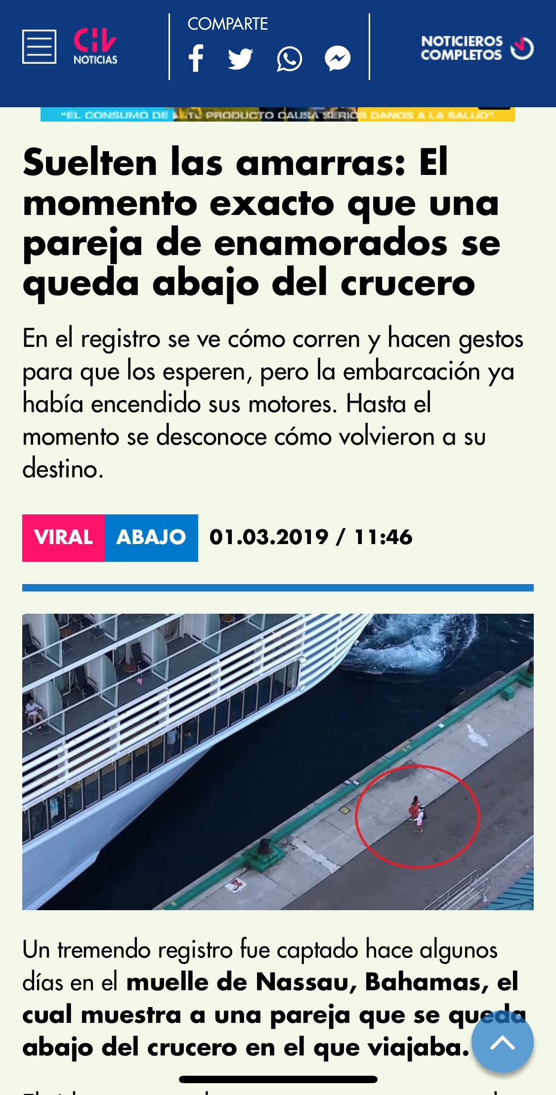 La llamada para abordar se dio a las 3:30 p. m. y a las 4:15 p. m. los trabajadores cerraron la escotilla. Segundos después, la pareja aparece corriendo, con compras en manos, mientras el barco comenzaba a alejarse.