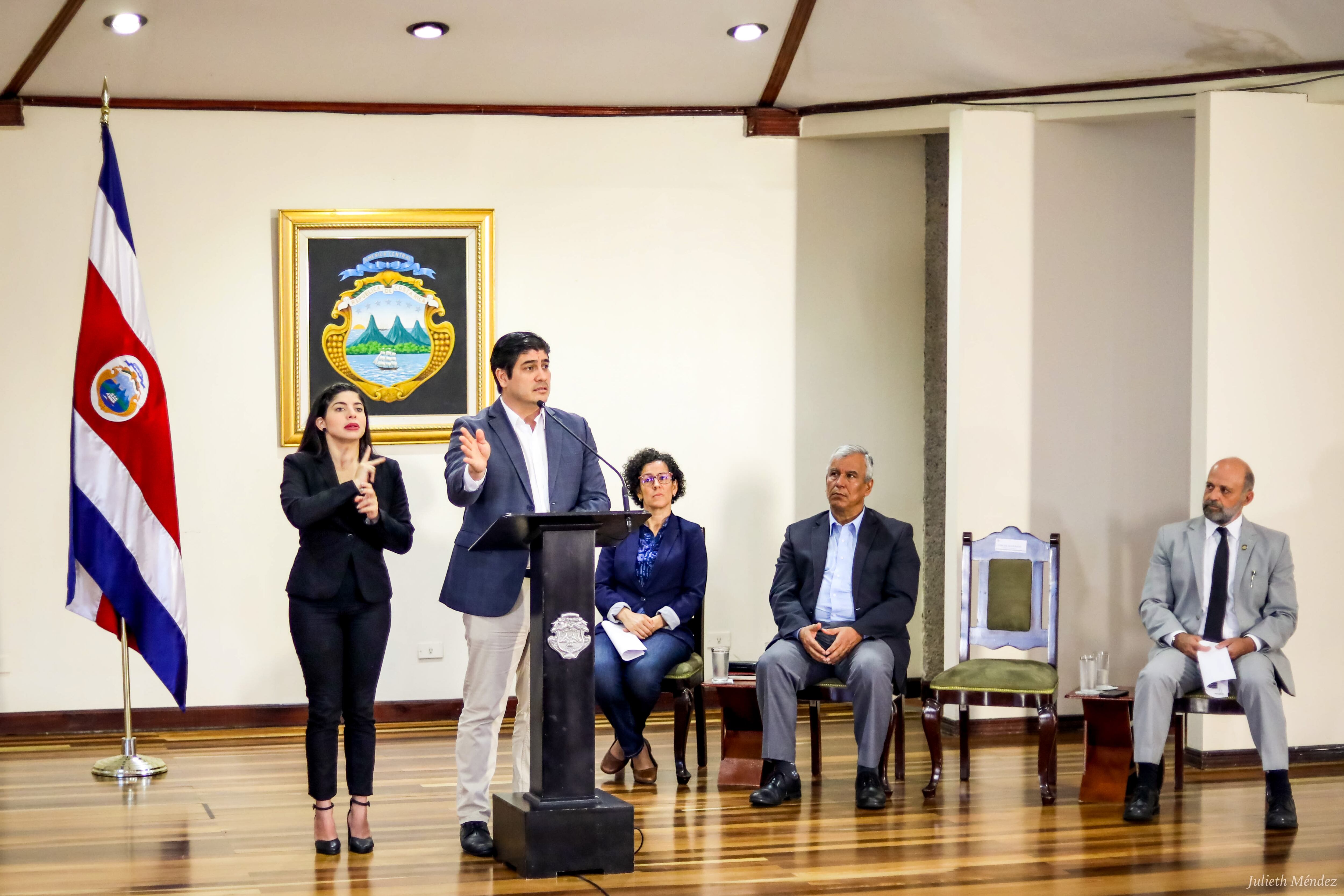 Desde del anterior gobierno de Luis Guillermo Solís se incluyó por primera vez y de forma permanente la interpretación a Lesco de las conferencias del Gobierno, algo que se ha mantenido hasta la fecha y Carvajal siempre ha estado.