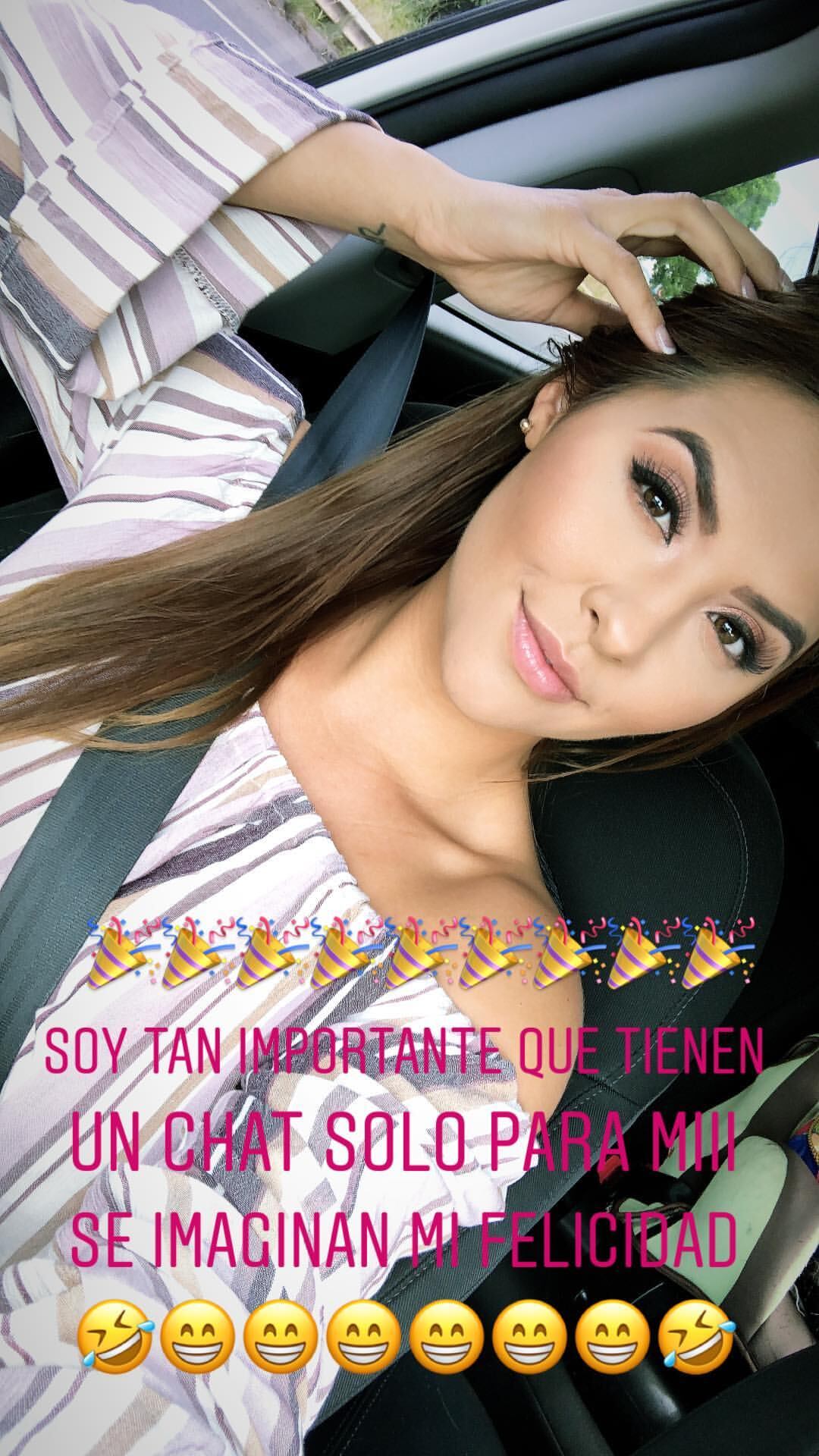 “Soy tan importante que tienen un chat solo para mí. ¡Se imaginan mi felicidad!”, escribió la conductora en una foto.