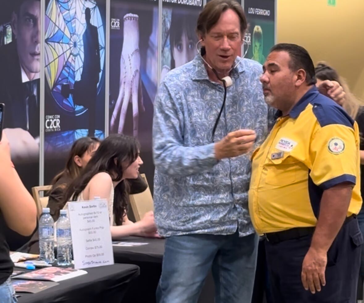 Cuando llegó al evento Mauricio Despla no pudo contener su emoción de ver al actor Kevin Sorbo, por lo que inmediatamente aprovechó para pedirle una foto.