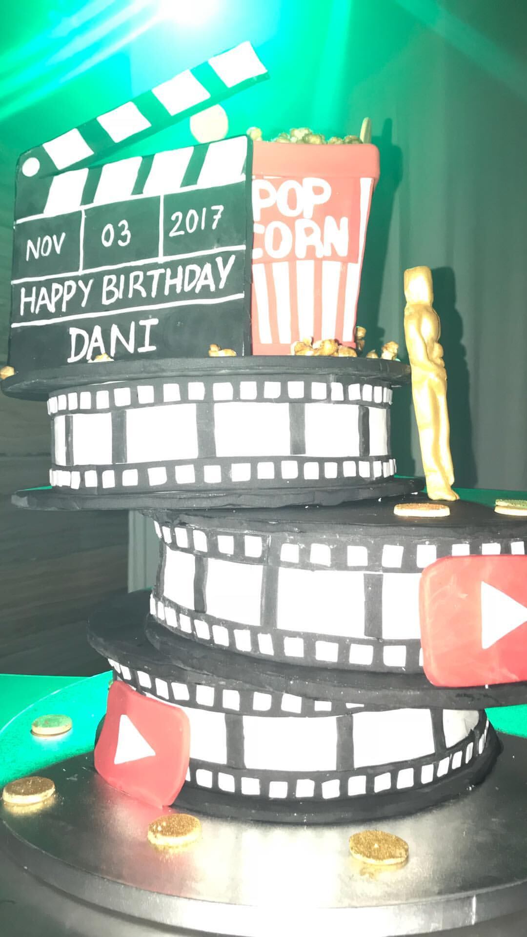 Y por supuesto, si hay fiesta hay pastel, y vaya que no decepcionó el queque de cumpleaños de la joven Daniela compuesto por varios niveles y también alusivo al mundo del cine.