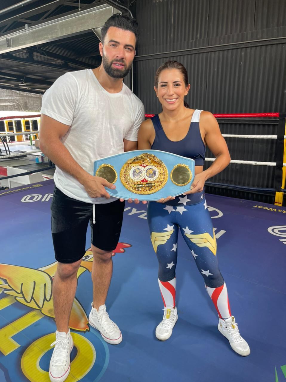 La hermosa pugilista y el guapo cantante se enfrentaron este domingo en el gimnasio Furati, en Santa Ana, luego de que Yoka aceptara un reto que le lanzó el artista en redes sociales.