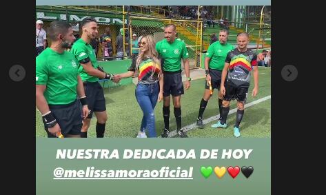 La guapa modelo y empresaria Melissa Mora sorprendió este fin de semana al ser la dedicada de uno de los partidos del fútbol nacional.