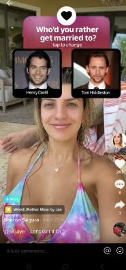Mientras anda paseando junto con su esposo, Daniem, en la playa, ella se puso a jugar con el filtro que pregunta con quién te casarías y que pone una opción de un lado y otra a la par para seleccionar, en este caso a algún artista famoso, tenía que mover la cabeza hacia donde estaba la imagen. Hasta ahí, todo bien.