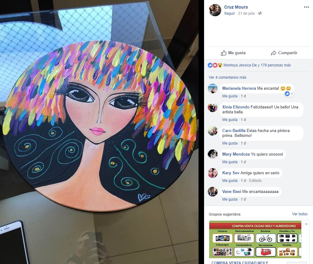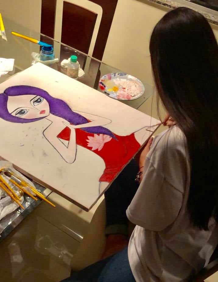 La exmodelo aprovechó para revelar que se la juega con los pinceles y las pinturas, al mostrar dos artes, que se robaron los likes y los comentarios de sus amigos.