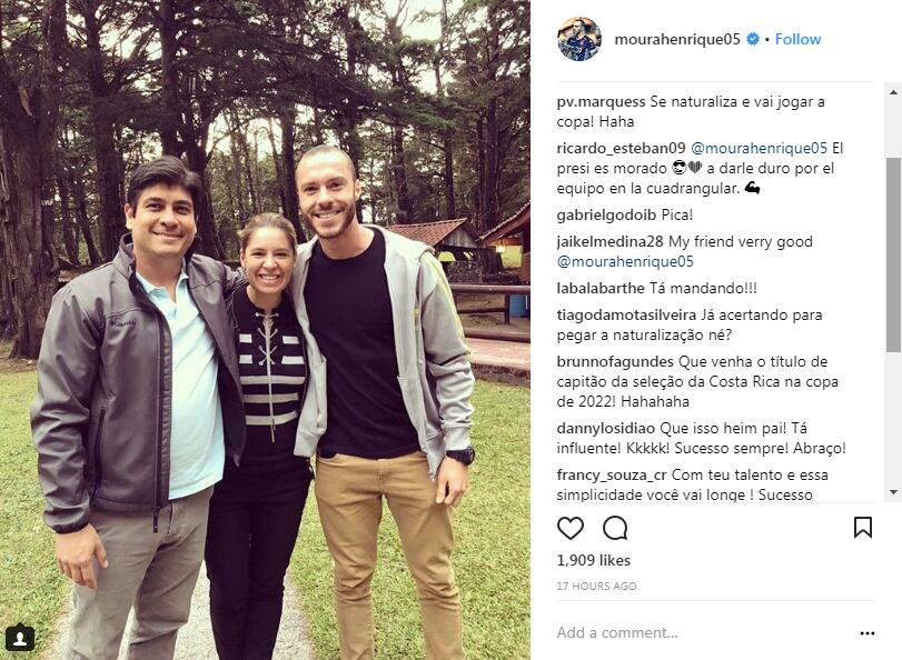La expresentadora Vivian Campos y su novio, el futbolista morado Henrique Moura, se fotografiaron con el presidente electo, Carlos Alvarado, y la futura primera dama de la República, Claudia Dobles.