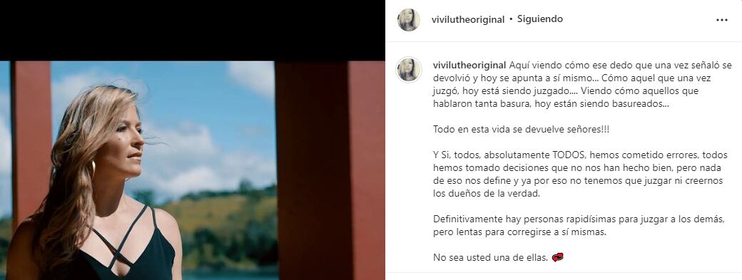 “Aquí viendo como ese dedo que una vez señaló se devolvió y hoy se apunta a sí mismo... Como aquel que una vez juzgó, hoy está siendo juzgado.... Viendo como aquellos que hablaron tanta basura, hoy están siendo basureados...Todo en esta vida se devuelve señores!!!”.