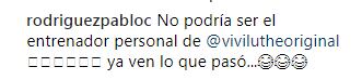 Entre los comentarios se puede leer como Rodríguez afirma que no puede ser el entrenador personal de la macha, pues todos vimos lo que pasó… aunque no entendimos a qué se refería el actor..