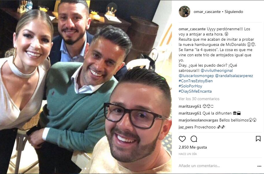 Los cuatro decidieron tomarse un selfi en el que Calderón y Cascante, quienes fueron vinculados románticamente a finales del año anterior, aparecen juntos, abrazados y muy contentos.