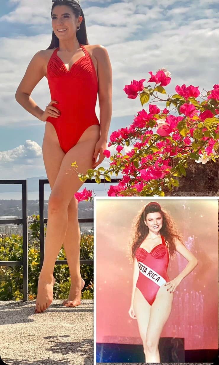 La joven le envió una fotografía a su mamá desde un paseo que estaba haciendo en Puntarenas, en la que utiliza el mismo vestido de baño rojo que su mamita lució en la final del Miss Universo 1991, cuando Muñoz fue la representante tica en Las Vegas, Nevada.