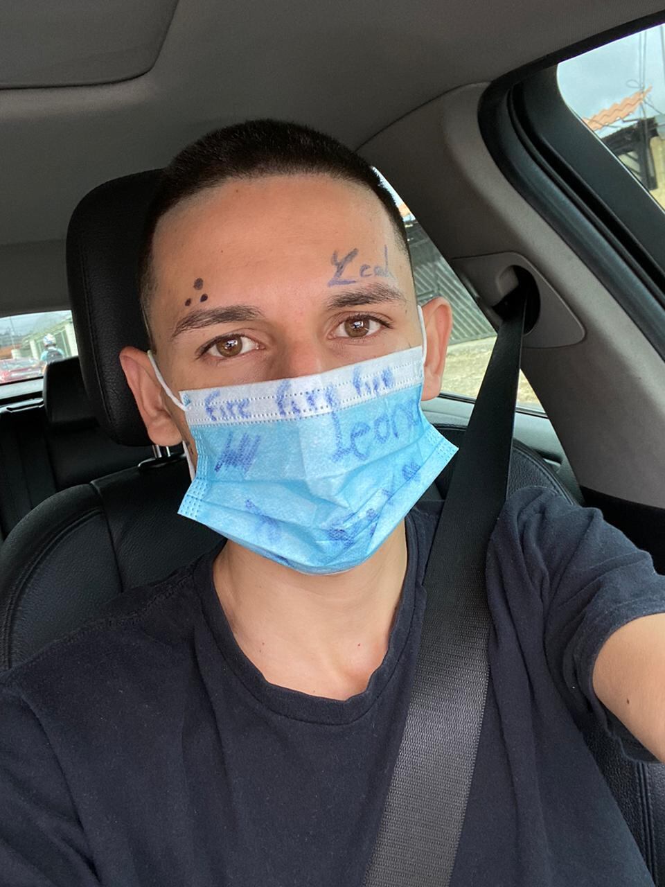 También se rayó toda la mascarilla y puso a un cómplice a llamarlo para decirle que lo andaban buscando para meterle unos plomazos. La reacción de las personas es un pacho.