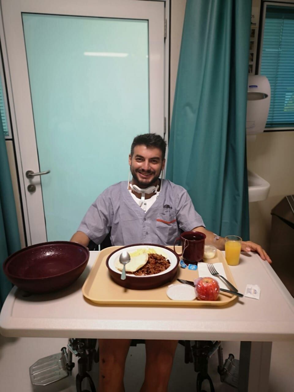 Fofo, como le dicen de cariño, pasó 22 días internado en el Hospital del Trauma del INS y tuvo que andar cuatro meses con un cuello ortopédico que le llegaba hasta el pecho porque se fracturó dos vértebras del cuello.