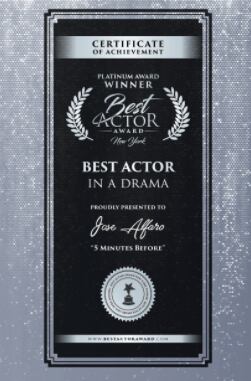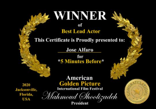 Precisamente, este jueves ya pudo gritar a los cuatro vientos que fue premiado como mejor actor en dos festivales internacionales de cine, uno en Estados Unidos y otro en Europa, por su cortometraje “5 minutos antes”.