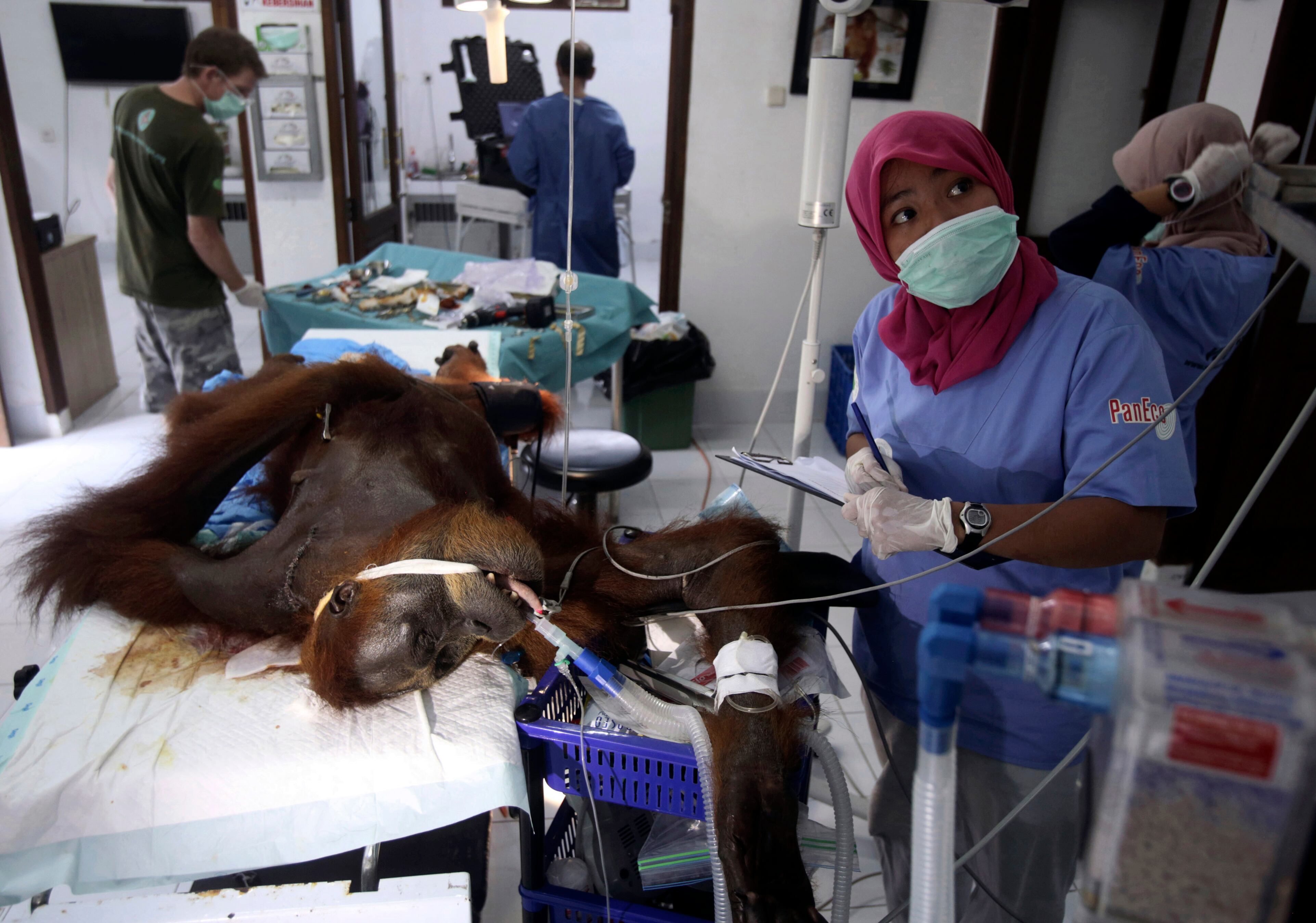 Una radiografía mostró al menos 74 impactos en el cuerpo del simio, incluidos cuatro en su ojo izquierdo y dos en el derecho, dijo Yenny Saraswati, veterinaria en el Programa de Conservación de Orangutanes en Sumatra. Añadió que el animal, apodada Hope (Esperanza) por los rescatistas, quedó ciega por los disparos y también tenía varias heridas abiertas que se cree que fueron causados con objetivos filosos.